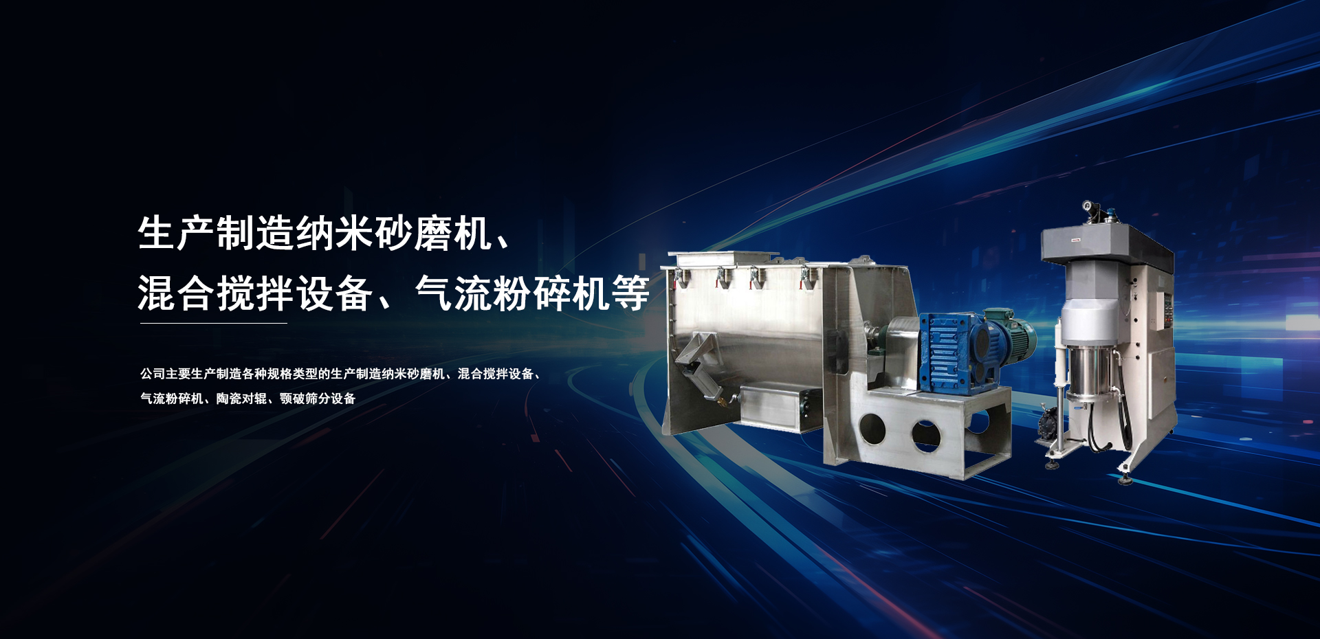 生產(chǎn)制造納米砂磨機、混合攪拌設(shè)備、氣流粉碎機、陶瓷對輥、顎破篩分設(shè)備